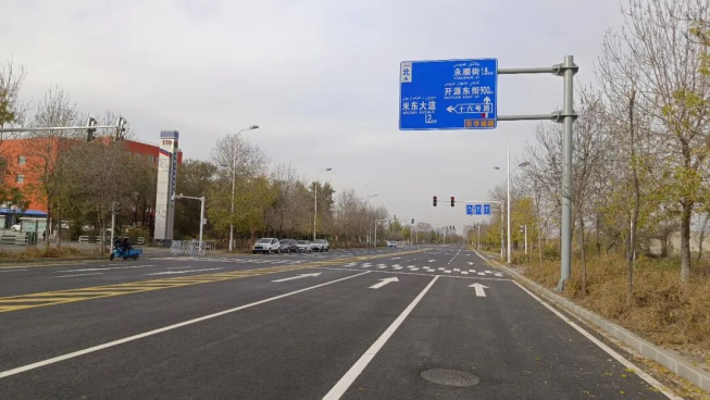 東華北路是連接水磨溝區(qū)與米東區(qū)的城市主干道,橫穿水龍灣片區(qū)。過去,這條路因年久失修,路面坑洼、井蓋損壞松動等問題。2023年,米東區(qū)啟動?xùn)|華北路(喀什東路-石化路)提升改造工程:改造后的道路全長4000米、紅線寬60米,清晰劃分機動車道、非機動車道與綠化帶,路面平坦開闊,標識標線齊全,還新增交通標志與信號設(shè)施,更換了路燈并實施電力線桿入地工程,徹底清除了空中“蜘蛛網(wǎng)”。